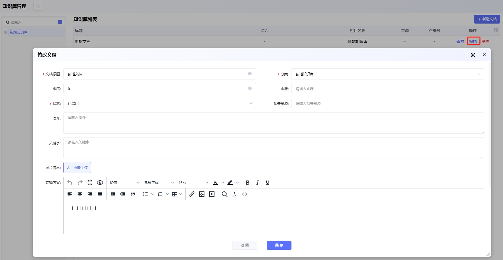 点击文档后对应的「编辑」可以修改文档内容